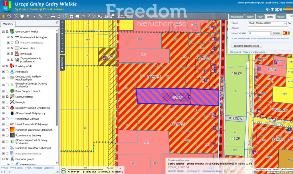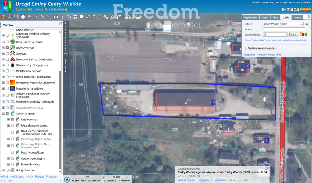 - Działka o nr ewid 54, obręb Cedry Wielkie;