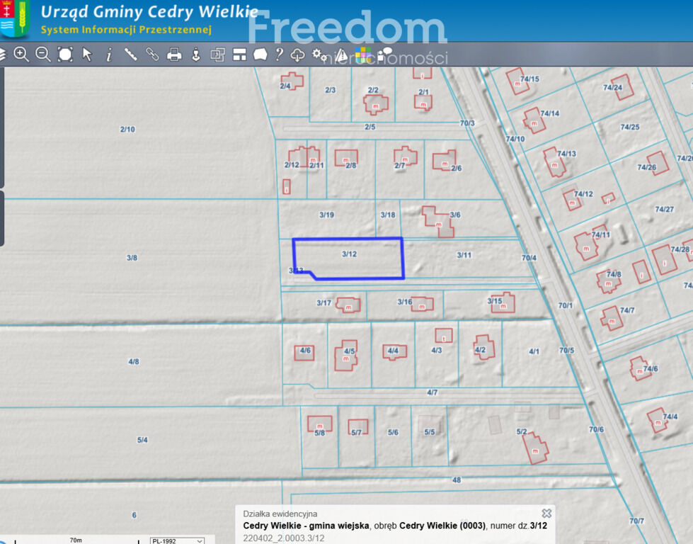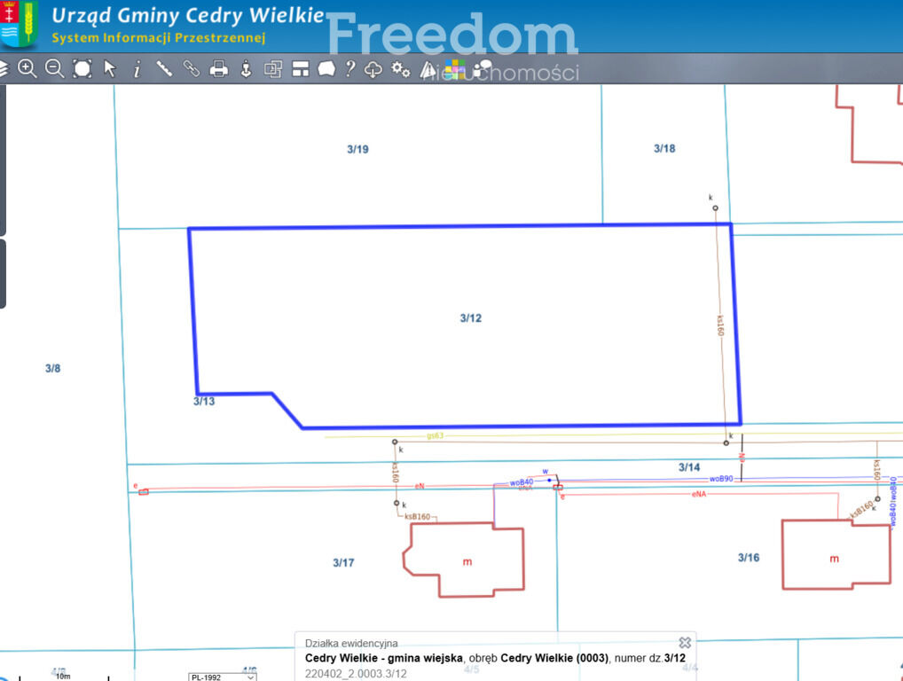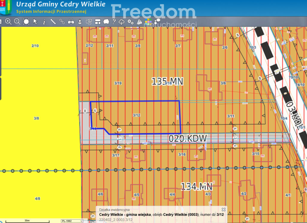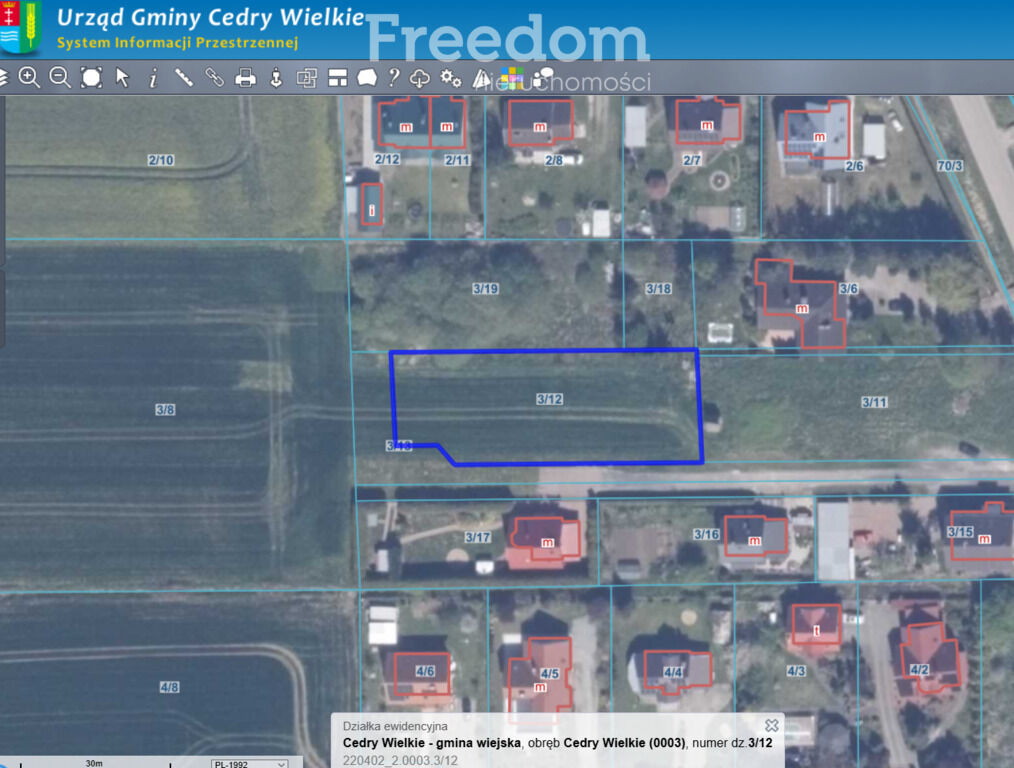 NIERUCHOMOŚĆ:- działka nr ewidencyjny 3/12 – powierzchnia 1 385 m2, obręb Cedry