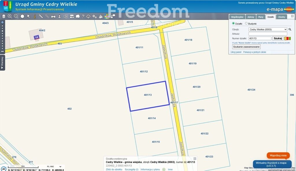 - Nr działki 401/13 obręb Cedry Wielkie,